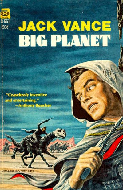Men for at vende tilbage til Big Planet, så udkom den første gang i 1957, udgivet af Ace Publishing. Den er en forlænget udgave af novellen Big Planet, som Vance oprindelig skrev til Startling Stories-bladet i 1952. Big Planet er den selvstændige første del af en serie på to, “the Big Planet twosome” som de hedder blandt Vance-fans. Anden og sidste del af serien hedder Showboat World (1975), og kan ligesom Big Planet læses som en selvstændig roman.