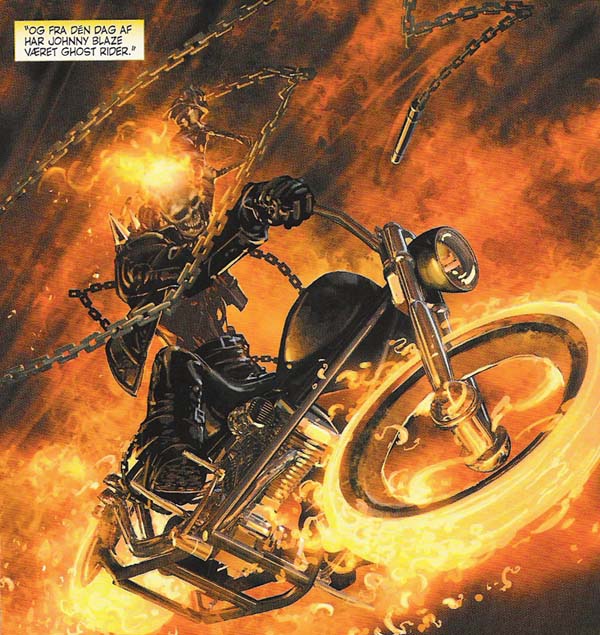 Johnny Blaze var en stuntman, der udførte voldsomme shows på sin motorcykel. Han solgte sin sjæl til Satan for at redde sin stedfader, men i stedet for at ende i Helvede, blev han bundet sammen med dæmonen Zarathos, og det gjorde, at Johnny kunne leve videre som en antihelt på Jorden.