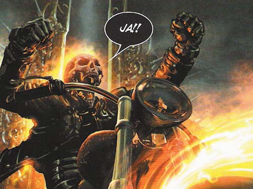 Den mere “almindelige” udgave af Ghost Rider har en del menneskelige aspekter, hvor rytteren blot er en egenskab, som den menneskelige Johnny Blaze kan fremkalde. Men med Ghost Rider: Vejen til Helvede har Ennis taget den yderste konsekvens af mytologiens byggesten og har fjernet den sidste rest af menneskelighed fra Johnny Blaze. Han er nu ét med rytteren og er fanget i Helvede. Men naturligvis åbner der sig en mulighed for, at Johnny kan komme tilbage til Jorden.