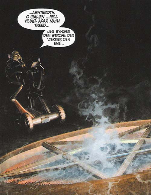 Det er ikke så svært for Ghost Rider at sige ja til opgaven, og snart er han tilbage på Jorden. Her stifter vi samtidig bekendtskab med rigmanden Gustav, som gennem en ulykke er blevet lam. Men han har gennem okkulte studier fundet frem til en dæmon – ja naturligvis er der tale om Kazaan – som vil give ham hans førlighed tilbage, hvis bare lige Gustav hjælper ham med at tage form på Jorden. Og så er Fanden løs i Laksegade. Hvad der siden hen sker, vil jeg ikke afsløre her, men kan blot konstatere, at læseren får smæk for skillingen og at der hen mod slutningen kommer et par gedigne overraskelser.