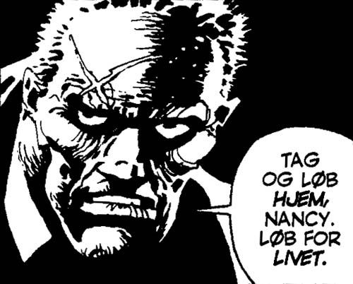 Dels fordi det underminerer historiens mere alvorlige tone – hvis Miller endelig havde besluttet sig for et mere seriøst udgangspunkt, burde han have holdt ved det hele vejen igennem. Og dels fordi den danske oversættelse af de to idioters samtaler desværre ikke er særlig god.
