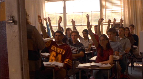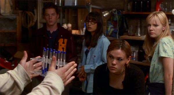 Hvordan handlingen herefter udvikler sig, skal jeg ikke afsløre alt for meget af, men hvis man har set et par alien invasionfilm (eller læst et par bøger), ved man nok nogenlunde, hvad der vil sker. Det, jeg gerne vil gå lidt mere i detaljer med, er, præcis hvor uoriginal The Faculty i bund og grund er. Til gengæld vil jeg med det samme sige, at jeg ikke har det store problem med det, for på kæk metafacon får manuskriptforfatteren Kevin Williamson i dialogen præciseret – og dermed indirekte krediteret – inspirationskilderne. Det sker, da Stokely og Casey diskuterer, hvor mærkeligt folk er begyndt at opføre sig på skolen, og Stokely tørt konstaterer, at “it’s like they’ve all turned into fucking pod people or something”.