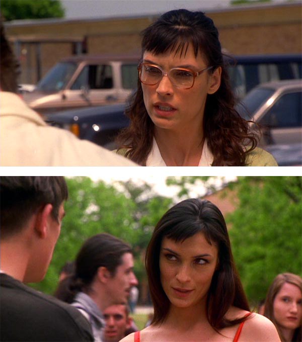 Famke Janssen behøver næppe nogen introduktion, men hendes rolle er ekstra morsom, fordi hun udvikler sig fra bebrillet, underkuet lærerinde (præ-rumvæsner) til vampet, laber dulle, der ikke tager noget pis fra nogen. Bebe Neuwirth siger måske ikke folk så meget, men hvis jeg siger Frasiers kone, ringer der formentlig en klokke hos de fleste. Hun er gyselig nok i Frasier, men forestil jer så damen som rektor på et gymnasium – og endda ekstra ond, fordi hun er overtaget af rumvæsner. Helt genialt! Nu vi er ved komedierne er det også et glimrende valg at caste Jon Stewart (ja, dén Jon Stewart) i en uvant skurkerolle som biologilæreren Furlong, for naturligvis bliver også han overtaget af de lede aliens. Endelig er der Daniel von Bargen – igen et navn, der måske ikke umiddelbart siger de fleste noget, men som de fleste nok genkender, når de ser ham. Von Bargen er en garvet birolleskuespiller, der ofte ender i mere eller mindre ubehagelige roller, og han er glimrende til det – således også i The Faculty, hvor han har én af de mindre roller. At Salma Hayek er med (hun spiller skolens sygeplejerske) bør ikke komme som en overraskelse, da hun er en Rodriguez-regular.
