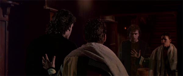 Ikke desto mindre er lige præcis dette aspekt af filmen den eneste grund til, at jeg et eller andet sted har en svaghed for The Lost Boys. Der skal ikke herske nogen tvivl om, at det så klart er de komiske islæt, jeg synes er filmens stærkeste, og scenerne da drengene buser ind i kirken for at fylde deres feltflasker med vievand og går på vampyrjagt i blodsugernes hovedkvarter er fin underholdning. Bedst af alle er dog Sam og Michaels bedstefar, morsomt fortolket af Barnard Hughes, der da også får lov til at redde dagen (natten) og komme med filmens afsluttende kække kommentar: “One thing about living in Santa Carla I never could stomach.. all the damn vampires.” Så smiler man og tænker “ja, ok, det er da sjovt”.