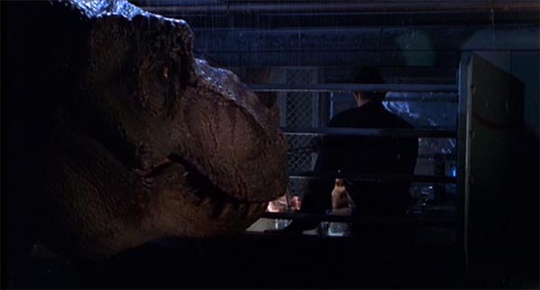 Hvor denne ene scene viser Spielbergs fremragende evne til iscenesættelse af neglebidende suspense, er der andre dele af filmen, der viser hans kapacitet for det rendyrkede bulder og brag. Det er filmens klimaks, hvor en Tyrannosaurus slipper fri i San Diego og laver ravage. Hvor spektakulært det end er, er det imidlertid scenerne på øen, der er de mest effektive, og det er da heldigvis også dér hovedparten af handlingen udspiller sig.
