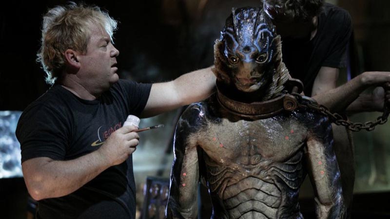 Men den virkelige magi ligger i det vidunderlige væsen fra floden. Det tog del Toro og hans special effects-hold (under ledelse af skulptør og creature designer Mike Hill) tre år (!) at udvikle den detaljerede, lysende dragt, lavet af skum, latex og komplicerede animatronics, som den erfarne væsen-skuespiller Doug Jones (han har nu lavet hele seks film med Del Toro) skulle bære i mange timer af gangen.