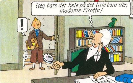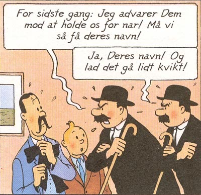 Tintin tænker ikke nærmere over det, og tager sin afsked. Men da han kort efter vender tilbage til professorens lejlighed for at hente en bog, som han glemte, overhører han en mystisk samtale mellem nogle mænd, der nævner hans navn. Han følger efter én af mændene, overhører endnu en samtale på en syldavisk restaurant, og Tintin overbevises om, at der foregår noget skummelt, og at professor Hallandsen på en eller anden måde er involveret.