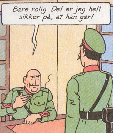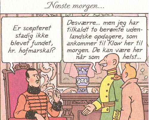 Så skal meget mere af handlingen ikke afsløres i detaljer her, for det ville være ærgerligt. Men lad mig i hvert fald sige, at Tintins problemer langt fra er slut: Han fatter mistanke til professor Hallandsen, som der nu er noget besynderligt ved, og han udsættes for flere attentatforsøg. Men endeligt begynder sagens sammenhæng at gå op for ham; professor Halambique er på en eller anden måde blevet involveret i et plot mod Syldaviens kong Muskar, der har til hensigt at få Muskar afsat og landet besat af nabolandet Bordurien.