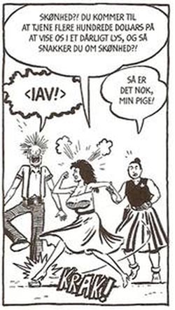 Oversættelsen til dansk står Steffen P. Maarup for – han har tidligere oversat blandt andet Frank Millers 300, og hans præstation med denne saga er ganske flot. Af den smule, jeg har kigget på de originale engelsksprogede albums, formår han at ramme den levende og rå tone rigtig fint – humoren og de skarpe replikker har absolut overlevet oversættelsen. En ekstremt vigtig faktor i en fortælling med gæve gutter og rappe damer, hvor det fyger om ørerne med skældsord, trusler og frække forslag, og vold og død hører til dagligdagen.